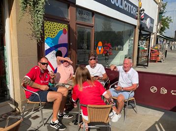 The B&W Army was able to bask in the glorious late summer sunshine outside The Record Cafe.
