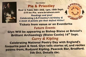 The highlight of the stay at The Record Cafe was the appearance of legendary Bradford poet and showman Glyn Watkins. Aware of the Histon Mariners in town, Glyn arrived as part of his celebrating J.B. Preistley’s birthday. Manningham born Preistley’s Cambridge connections (student at Trinity Hall) were lost on neither Glyn or The Histon Mariners and partly as a result the protagonists became “God Companions”